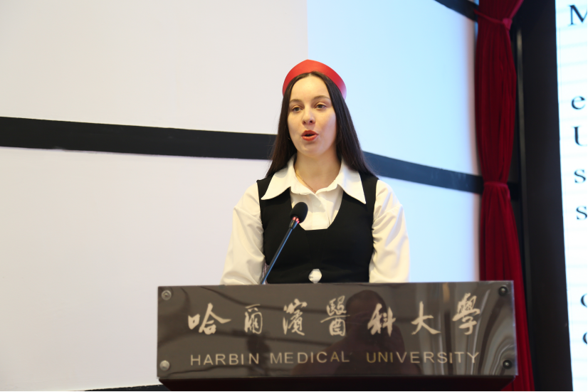2023级黑龙江省政府奖学金项目博士研究生丽娜作为在校生代表用中文发言,她详细分享了自己在哈医大的学习日常和积极参与学校课外活动的感受,这些经历让她的留学生活更加丰富多彩;2025级中国政府奖学金项目硕士研究生哈尼夫作为新生代表用中文发言,分享了来到学校后的学习生活体验并表达能更好地融入中国,在学术之路上勇于探索。