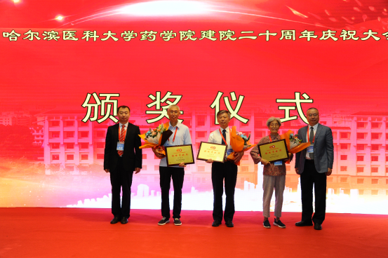 二十载薪火相传,生生不息;二十载桃李芬芳,英才辈出。在风景秀丽、鸟语花香的北国七月,药学院喜迎建院二十周年。7月24日早7:30,药学院建院二十周年庆祝大会隆重举行,哈尔滨医科大学药学学科带头人杨宝峰院士,校长张学院士,空军军医大学陈志南院士,清华大学程京院士,河北医科大学丛斌院士,首都医科大学附属北京同仁医院韩德民院士,澳门科技大学刘良院士,北京积水潭医院田伟院士,中国疾控中心地方病控制中心主任兼哈医大副校长孙殿军,学校副书记兼工会主席贺景平,纪委书记尹占军,副校长赵光,副校长许超千,校党委常委、组织部部长王小雪及学校各职能部处领导、国内及校内兄弟院系领导、药学院老领导、老教师代表及全体教职工参加庆祝大会。大会由药学院院长张勇教授主持。
