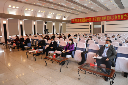 张斌指出,一年来,学校党委严格落实中央、省委、省委教育工委要求,以高度的政治责任感精心组织实施,统筹协调部署,有力有序推进,在省委教育工委第三巡回指导组的有力指导下,按照“学史明理、学史增信、学史崇德、学史力行”的总要求,推动党史学习教育高站位、高标准、高质量开展,广大党员干部师生员工受到了一次全面深刻的政治教育、思想淬炼、精神洗礼、在学党史、悟思想、办实事、开新局上取得扎实成效。一是提高政治站位,严格对标对表。学校党委把开展党史学习教育作为贯穿全年的重大政治任务,坚持以习近平总书记关于党史学习教育的重要论述为指导,全面对标对表看齐抓落实,旗帜鲜明讲政治,推动党史学习教育有序开展、步步深入,保证各项工作始终沿着正确方向前进。二是主要领导带头,以上率下促动。校领导班子引领示范,走在先学在前,带头领学促学,带头领办实事,带头宣传宣讲,发挥了示范作用。各二级学院领导班子成员带头学、带头干,发挥了带动作用。全校各党支部、广大党员干部师生员工及时学、跟进学、统一学,推动学校党史学习教育形成强大合力,不断掀起学习热潮。三是精准分类指导,特色亮点纷呈。学校党委针对不同群体、不同特点,分类指导,全面覆盖。既突出党史学习教育,又注重四史宣传教育;既突出党员干部,又面向全校广大教职员工;既注重教师党员,又注重学生党员和广大学生;既注重学校党委统筹谋划,又注重发挥基层主观能动,形成全校一盘棋,整体联动,做到“规定动作”高标准,“自选动作”有特色。四是紧紧依靠广大师生员工,开门问策办实事。从“为师生办实事、为社会办实事”两个方向着手,采取走访调研座谈、学校官微公开征求意见、处级干部一人一策办实事等方式察民情访民意,坚持问题导向,积极发挥医学院校专业特点和优势,结合实际开展“安心解困”五项行动。确定校级重点推进项目18项,院系级民生实事项目329项。五是宣传宣讲营氛围,严督实导保落实。学校运用新leyu·乐鱼(中国)体育官方网站平台,营造浓厚氛围,建立党史学习教育专题网和十九届六中全会专题网。全校各二级院系党组织纷纷在官网、官微、院报上开专题、设专栏,编发简报,学校教师宣讲团和青年“四史”宣讲团、各二级学院党委宣讲团、宣讲小分队发挥作用,汇聚起广大师生员工信念坚定、对党忠诚、勇于担当的精神力量。六是着力攻坚克难,学校建设实现新发展。全力做好疫情防控工作,学科人才队伍建设全面加强,深化综合改革,加快向“双一流”建设目标迈进。