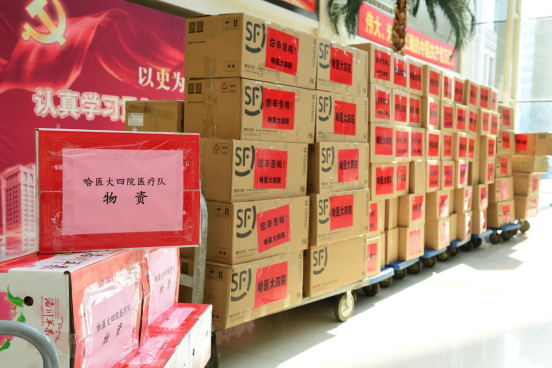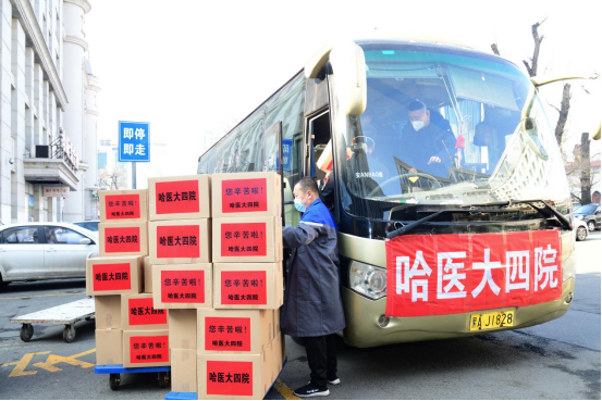 据了解,吉林突发疫情后,我省第一时间组织医疗队驰援吉林,哈医大四院紧随其后,迅速调集防疫物资、药品、即食食品等,为我省医疗队提供坚实后勤保障。