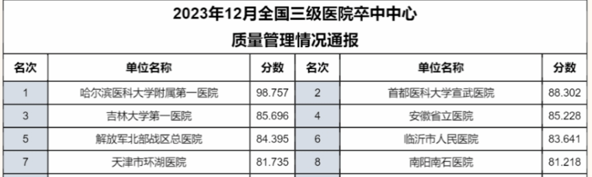 哈医大一院卒中中心获全国高级卒中中心质量管理排行第一