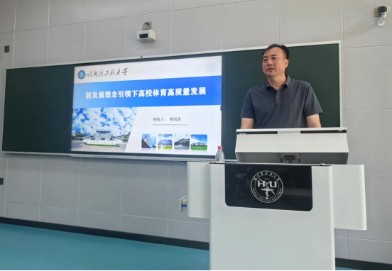 为进一步推进我校公共体育教育教学改革,切实发挥体育工作在推进大学生素质教育中的重要作用,5月8日下午,体育教研部邀请哈尔滨工程大学硕士生导师李尚滨教授作题为《新发展理念引领下高校体育高质量发展》的专题讲座。体育教研部主任李霞主持讲座。