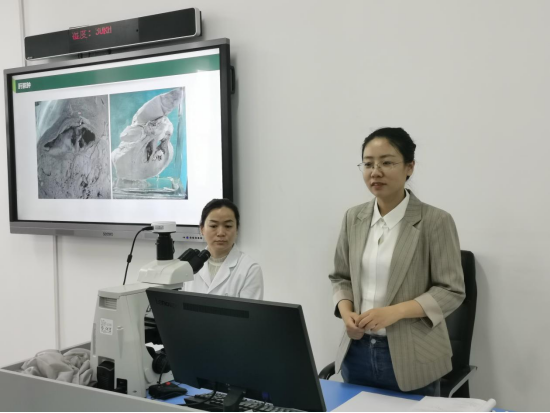朱媛媛和郑宏彦老师讲解病理标本
