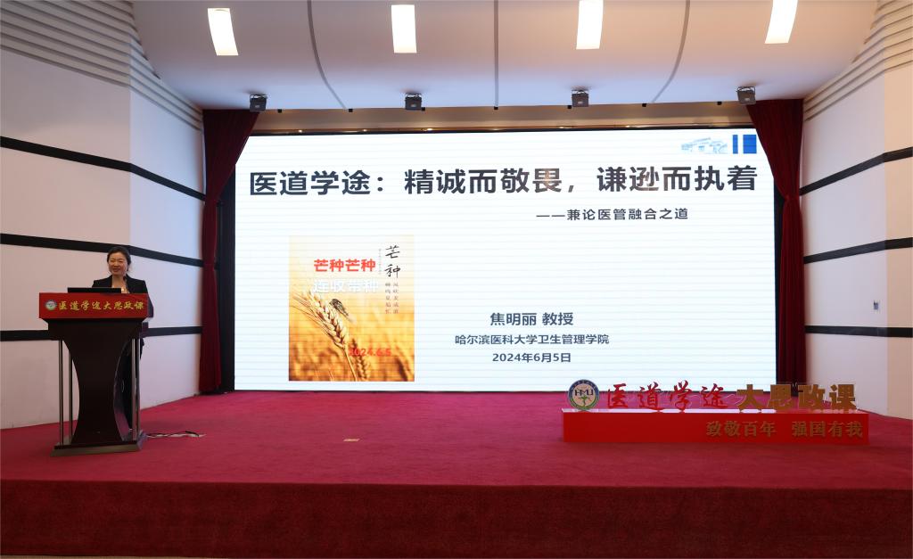 6月5日,学校在主楼演讲厅举办“医道学途 大思政课”第五场讲座。卫生管理学院副院长焦明丽教授主讲《精诚而敬畏,谦逊而执着——兼论医管融合之道》。地病中心党委书记、学校党委常委袁重胜,党委常委、组织部部长王小雪出席讲座,党委宣传部部长孙理主持讲座。全校师生线上线下同上一堂大思政课。