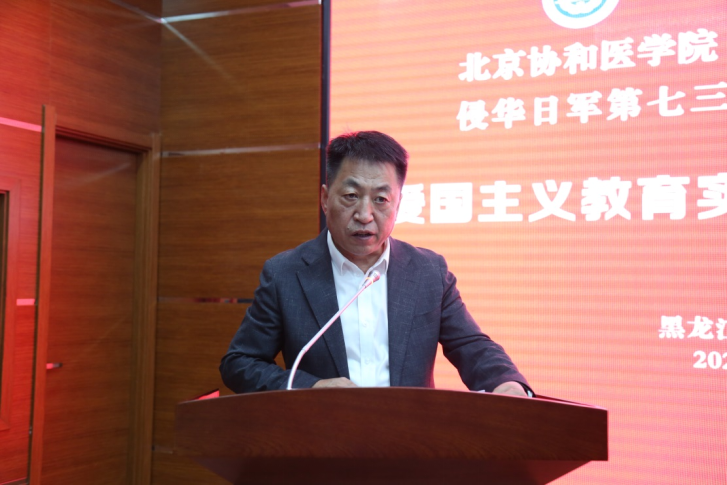 王辰在致辞中表示,哈尔滨是中国卫生史上具有标志性意义的地方。哈医大的创始人、协和医学院择址北京的建议者伍连德先生曾在此领导科学抗疫,贡献卓著,伟大之至。与之形成鲜明对比的是,七三一部队也是在这里犯下令人发指的滔天罪恶。在此特别向金成民馆长表达敬意。他三十五年来持之以恒地坚持,透过岁月的迷障,采集证据,把历史的残片组合起来,保存了国家、民族、人类的记忆,让我们看到基于客观证据还原的真实历史,由此激发中国、世界的思考,增强人类维护和平、发展文明的思想和行动。感谢省委省政府有关部门、哈尔滨市委市政府、平房区委区政府、七三一陈列馆给予的帮助和支持!很荣幸与两校师生在此共同接受教育,希望协和与哈医大一起建好爱国主义教育基地。相信此地所激发出的正义、爱国、爱人类情感将激励协和医学院和哈医大学子,铭记历史,以史为鉴,坚守和弘扬医学的科学与人道精神。