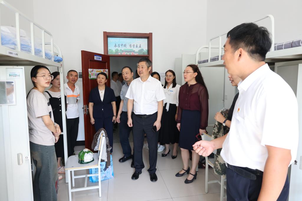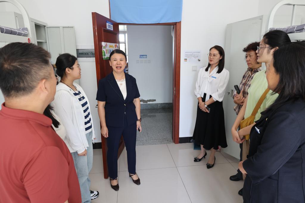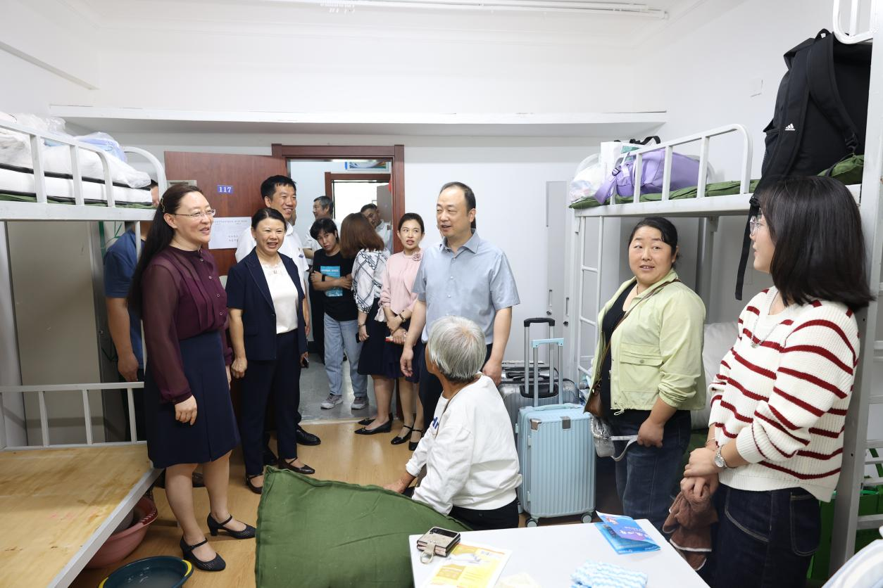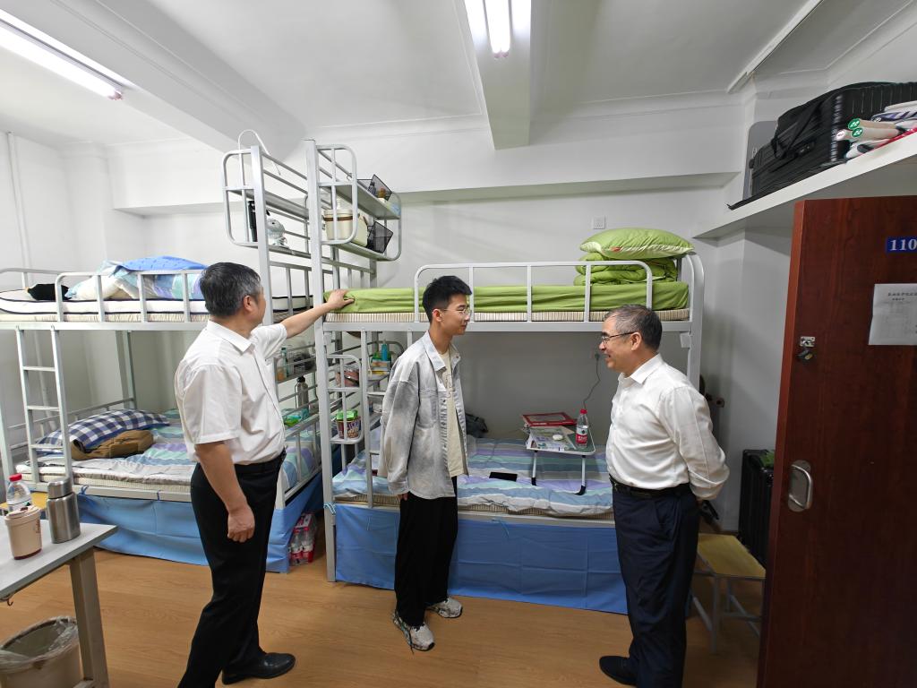 在学生公寓,学校领导查看新生住宿条件,与新生及其家长“拉家常、聊近况、话学业”,现场解决他们来校后的各种问题和需求,为同学们送去关怀与温暖。学校党委副书记东梅表示:“哈医大2026年即将迎来建校百年,同学们将共同参与建校百年庆祝活动,意义非凡。希望同学们珍惜时光,共同创造良好的学习和生活环境。”