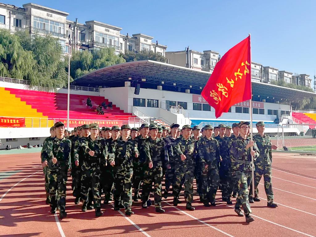 在天空如洗,暑热未消的9月里,来一场气势如虹的6公里徒步行军是一种怎样的体验?为检验和提高新生的军事技能,培养军训学生吃苦耐劳的精神,锤炼顽强的战斗作风,进一步提高学生体能,9月7日早8点半,哈尔滨医科大学参加军训的新生在行走中开展了一堂别开生面的国防教育课——校园6公里拉练活动。