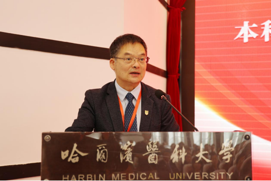 冯锋组长代表专家组感谢学校对审核评估工作的大力支持。他表示,哈尔滨医科大学是国内知名、有近百年历史的医学名校,在医学教育、医疗卫生事业等领域做出了重要的贡献。他表示专家组通过前期的线上评估工作,对学校教育教学各方面取得的成绩成果印象深刻。此次进校重点验证线上评估中发现的问题和存在疑问,以访谈、座谈、查阅资料等方式,深入考察了解相关工作,提出指导意见,为教育教学工作提供更多坚实支撑,以评促建,为哈尔滨医科大学“双一流”建设和百年医学强校建设贡献力量。