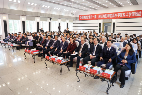 张学书记代表学校向审核评估专家表示最热烈的欢迎。他介绍了学校悠久的历史和深厚的底蕴。他指出,近年来学校以习近平新时代中国特色社会主义思想为指导,按照党中央、国务院决策部署,落实立德树人根本任务,深刻理解医学教育改革创新指导思想,立足国情、省情、校情,聚焦高质量医学人才培养目标,全面提高人才培养质量,为推进健康中国、健康龙江建设,保障人民健康提供了强有力的人才保障。