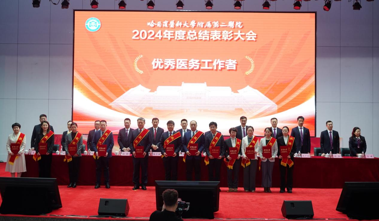 1月23日下午2时,哈医大二院召开2024年度总结表彰大会。哈尔滨医科大学校长季勇出席大会并讲话,地病中心主任、副校长高彦辉出席大会。哈医大二院党委书记焦军东宣读2024年表彰奖励文件。哈医大二院副院长贾海波主持大会。