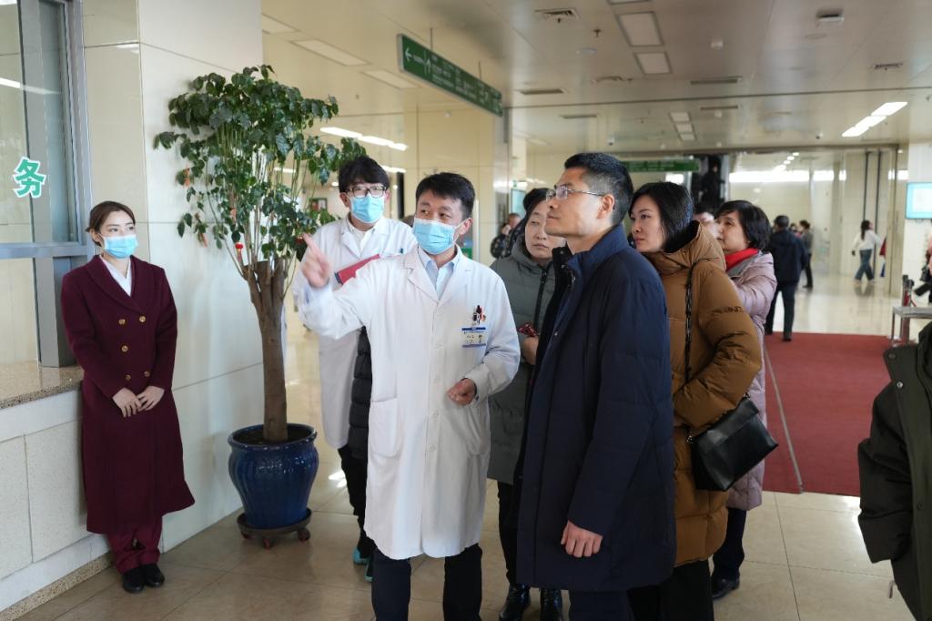 随后,调研团队来到哈医大一院群力院区,调研医院在医学人文关怀和医疗服务创新方面的实践成果。孙备院长对调研团队的到来表示热烈欢迎,薄红副院长介绍了相关工作进展。她提到,医院近年来创新服务模式,坚持高疗效、高安全、高精准与精细操作的“三高一精”理念,显著提升了患者的就医体验感和满意度。