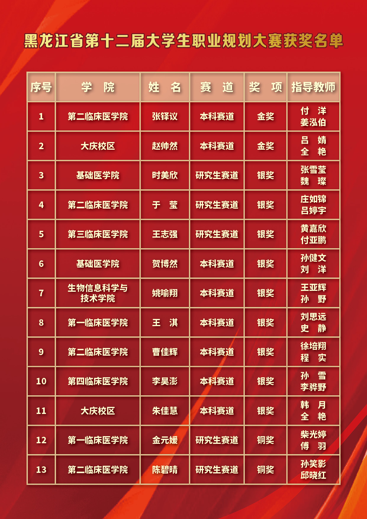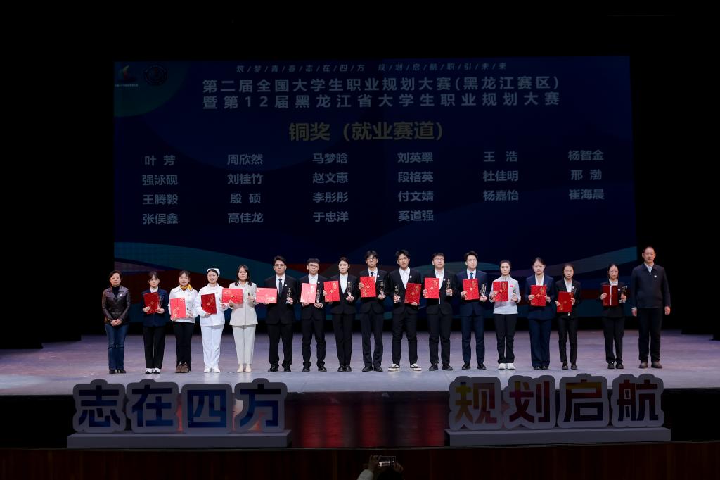 3月7日,第二届全国大学生职业规划大赛(黑龙江赛区)暨黑龙江省第十二届大学生职业规划大赛决赛圆满落幕。我校学子凭借扎实的职业规划能力和出色的现场表现,在赛场脱颖而出,一举揽获金奖2项、银奖9项、铜奖2项,4名教师获得“优秀指导教师奖”。同时,学校荣获“优秀组织奖”。晋级省赛决赛的13名选手全部获奖,获奖名次和数量位居全省第三位,创学校历史新高。