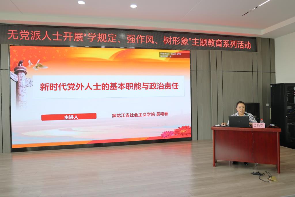 吴艳春教授围绕党外人士在新时代的政治责任与履职路径展开阐述,结合中国新型政党制度的发展历程,深入分析民主党派参政议政、民主监督的核心职能,并就如何通过提案、社情民意信息等工作服务国家治理现代化提出实践路径。她强调党外人士需立足新时代要求,强化政治担当,充分发挥专业优势,为多党合作事业和国家发展贡献智慧。