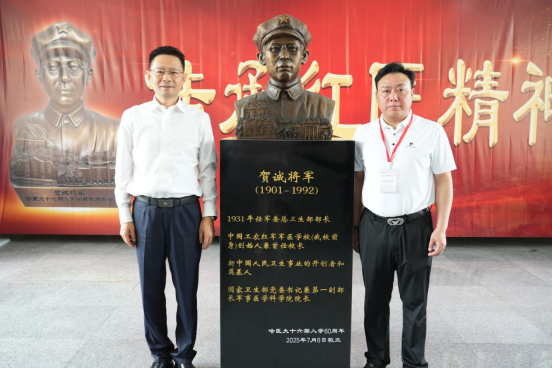 开幕式后,举行贺诚将军铜像揭幕仪式。季勇校长与贺杰主任共同为铜像揭幕。此铜像由学校第16期校友在其入学60周年之际捐赠,真情实感地体现了他们对母校的深厚情谊。
