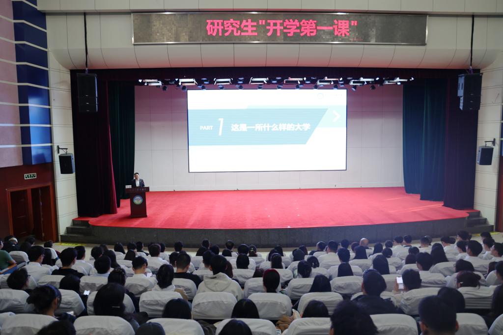 本次活动以线上线下相结合形式进行,近3000名研究生新生在主楼科技会馆和各学院分会场聆听“开学第一课”。