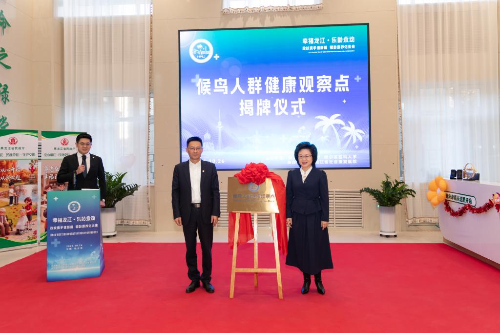 哈尔滨医科大学校长季勇、黑龙江省民政厅党组书记厅长董濮等双方领导共同出席启动仪式,并为“候鸟人群健康观察点”揭牌。黑龙江省社会康复医院作为观察点为精准服务旅居康养人群的重要载体,将依托哈尔滨医科大学的医疗资源与科研优势,为民政系统提供连续性、专业化的健康监测与干预支持,实现从“被动治疗”向“主动健康”的服务转型。