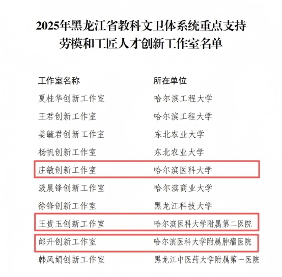 近日,黑龙江省教科文卫体工会发布《关于公布2025年重点支持的劳模和工匠人才创新工作室名单的通知》,我校3个团队成功获评省级劳模和工匠人才创新工作室称号。