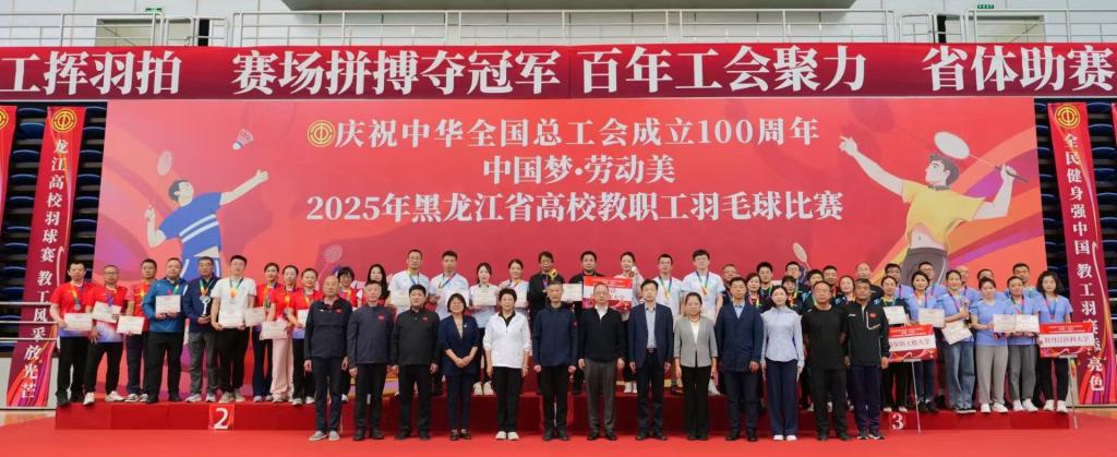 9月17日至19日,由省总工会、省教育厅、省体育局联合主办,省教科文卫体工会承办,黑龙江农业工程职业学院协办的“中国梦・劳动美——凝心铸魂跟党走 团结奋斗新征程”2025年黑龙江省高校教职工羽毛球比赛在哈尔滨举办。全省42所高校的536名教职工同场竞技,经过激烈角逐,我校代表队凭借顽强的意志和卓越的协作,历经多轮高强度对战,最终在多个组别中斩获殊荣。傅松滨、王大伟获得校长组男双冠军,金焰、陈红获得校长组双打亚军,周桂琴、杨秀贤获得工会组女双冠军,李丹铭获得职工组女单第三名。