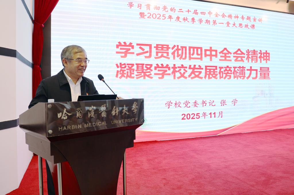 11月20日,学校举行学习贯彻党的二十届四中全会精神专题宣讲暨2025年度秋季学期第一堂大思政课,学校党委书记张学作专题宣讲,校长季勇主持宣讲会,副校长高彦辉全文传达《中国共产党黑龙江省第十三届委员会第八次全体会议决议》。