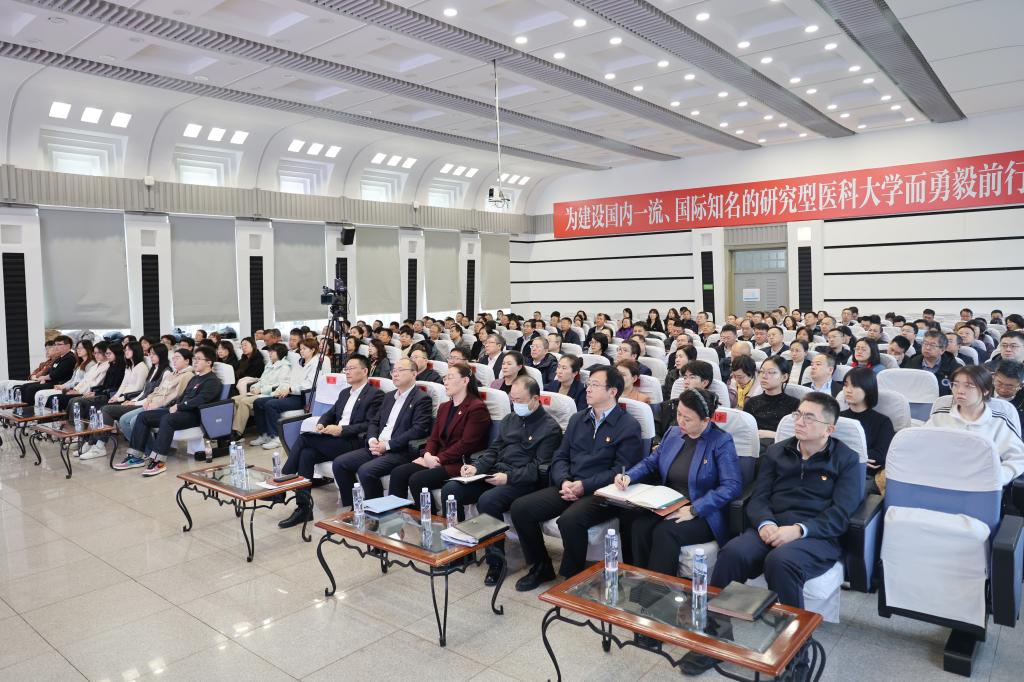 宣讲会上,张学以《学习贯彻四中全会精神凝聚学校发展磅礴力量》为题,从全会精神传达与解读、“十五五”规划建议说明、做谋划抓落实促发展三方面展开宣讲。报告紧紧围绕学习贯彻习近平总书记在党的二十届四中全会上的重要讲话精神和“十五五”规划建议说明,从深刻认识全会召开的重大意义,全面理解“十四五”时期取得的重大成就,系统阐述“十五五”时期经济社会发展的重大意义、目标任务等方面展开深入宣讲。同时,聚焦“一体推进教育科技人才发展”“实施健康优先发展战略”等内容,着重介绍了国家教育部、科技部、卫健委对全会精神的深入解读。结合学校工作重点,对全会精神的深入学习、宣传宣讲、贯彻落实等方面作出部署要求。他强调,全校各级党组织和广大党员干部要学深悟透习近平总书记重要讲话和党的二十届四中全会精神,深刻领悟“两个确立”的决定性意义,坚决做到“两个维护”,全面落实中央关于“十五五”规划《建议》部署,按照省委十三届八次全会要求,结合学校实际切实抓好全会精神的贯彻落实,坚定不移沿着习近平总书记指引的方向奋勇前进。他寄语青年学生要在基础前沿与临床一线磨砺“真本领”,把个人“小目标”融入国家“大蓝图”,肩负历史使命,坚定前进信心,立大志、明大德、成大才、担大任。