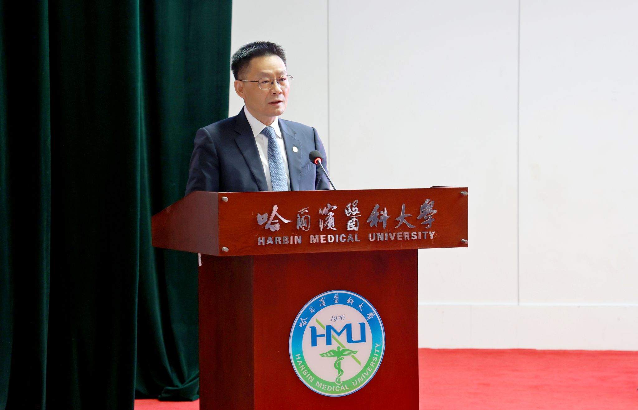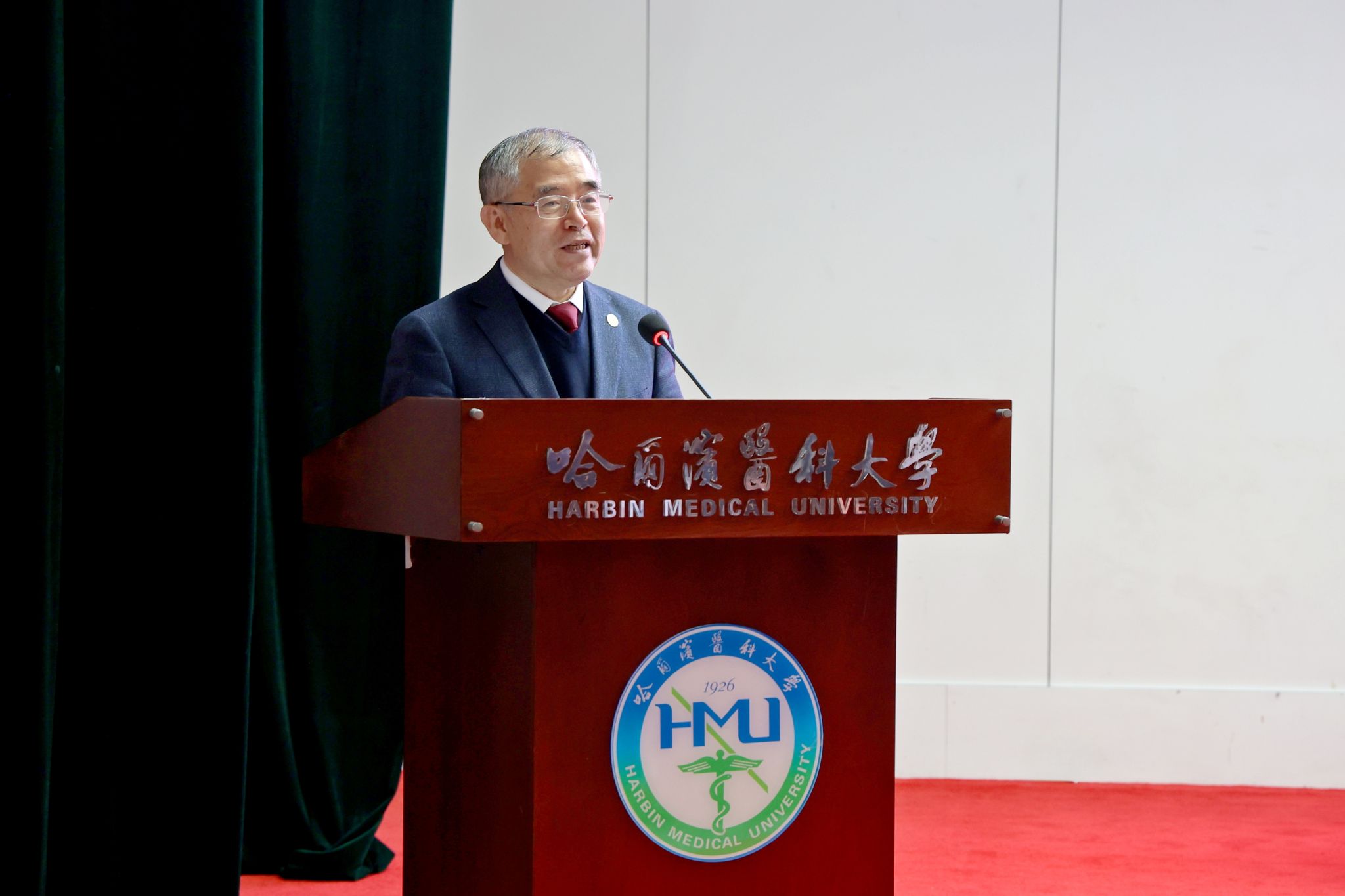 2026年4月15日,哈尔滨医科大学第六届教职工代表大会第二次会议在主楼科技会馆召开。学校党委书记张学出席会议并讲话,校长季勇作学校工作报告。学校领导班子成员、第六届教职代会281名代表参加会议,学校部分离退休老同志、民主党派代表及非直属单位负责人列席会议。