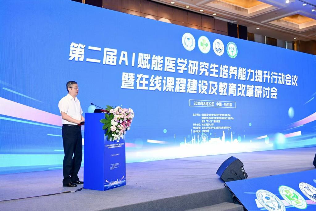 8月22日,由全国医学专业学位研究生教育指导委员会、中国学位与研究生教育学会医药科工作委员会和医学“双一流”建设联盟联合主办,哈尔滨医科大学承办的“第二届全国AI赋能医学研究生培养能力提升行动会议暨在线课程建设及教育改革研讨会”在哈尔滨召开。会议深入贯彻落实国家教育数字化战略行动及人工智能赋能教育行动,推动优质资源共享,促进医药学研究生在线教育改革,共话数字化赋能研究生教育高质量发展新蓝图。