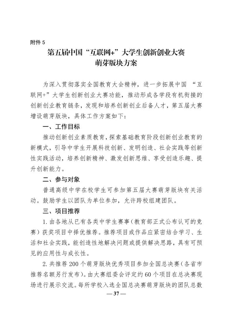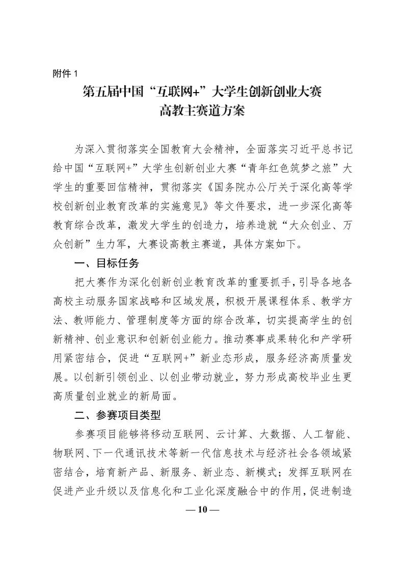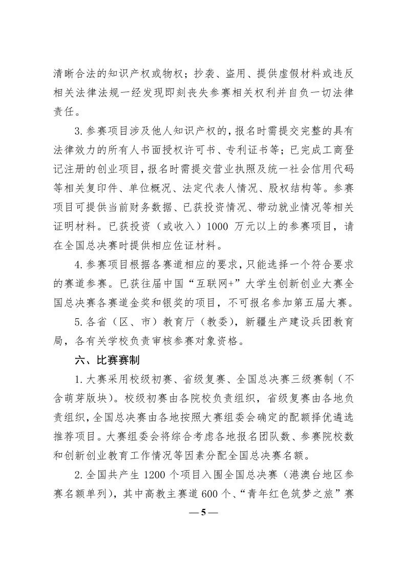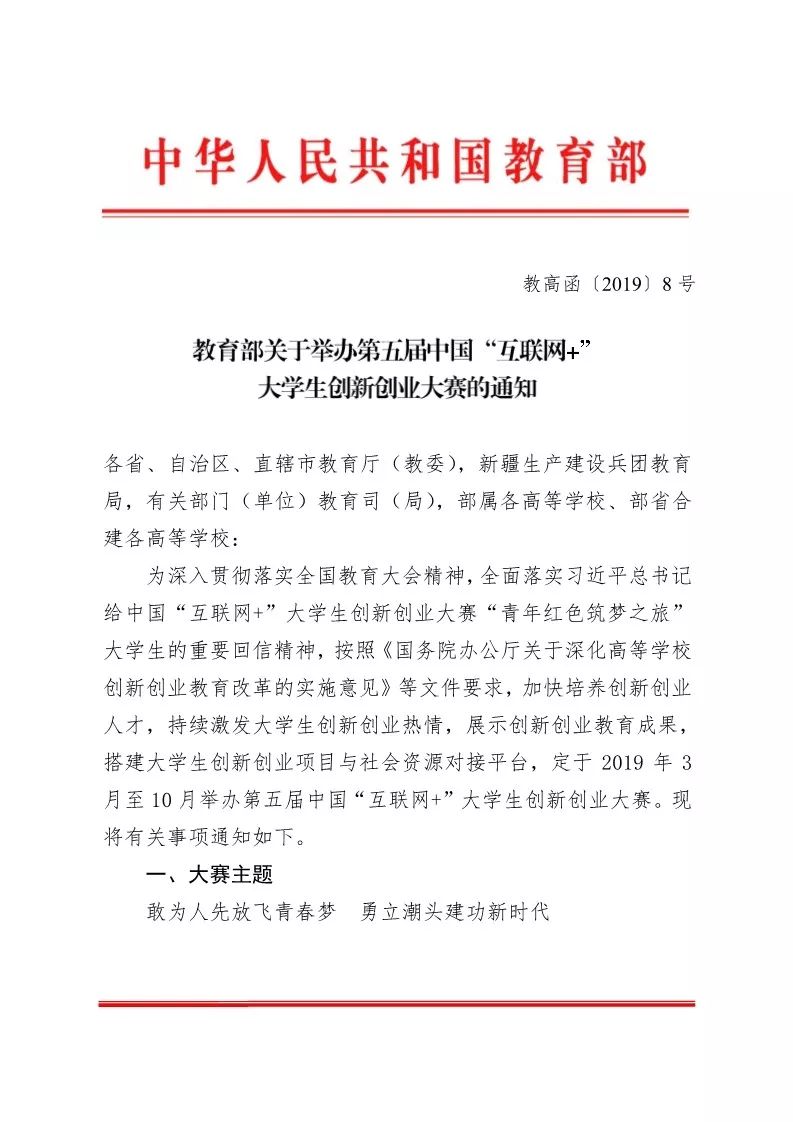 转发教育部关于举办第五届中国“互联网+”大学生创新创业大赛的通知