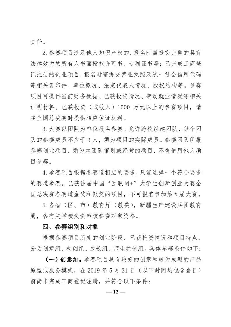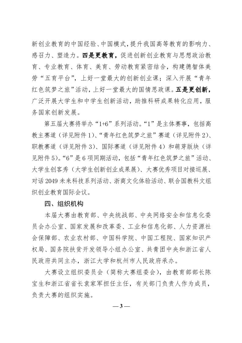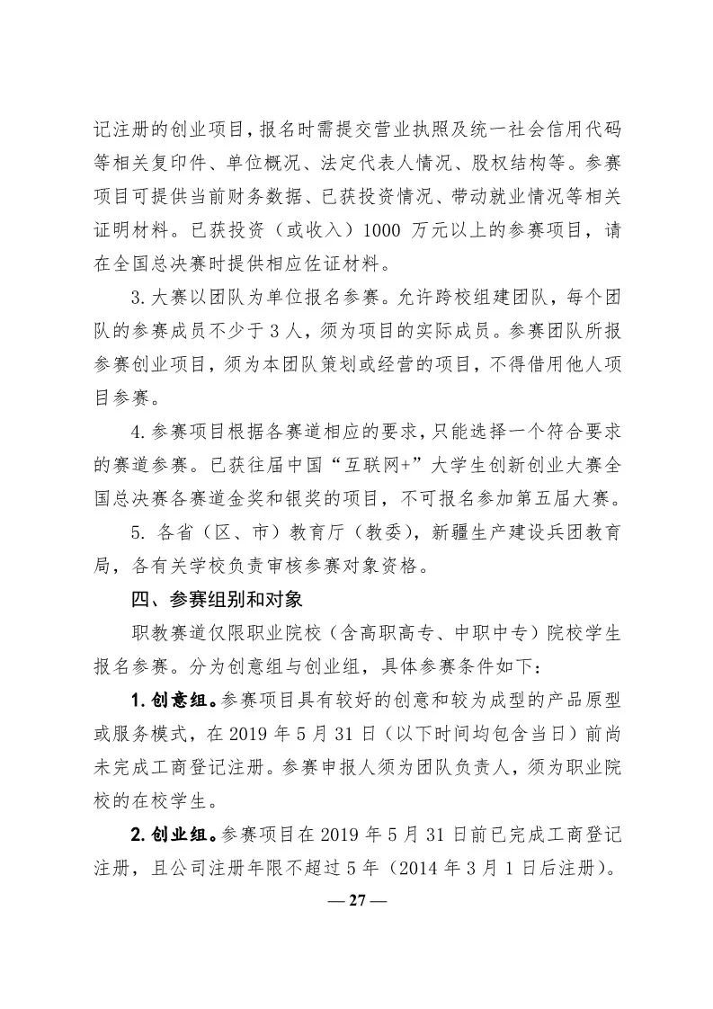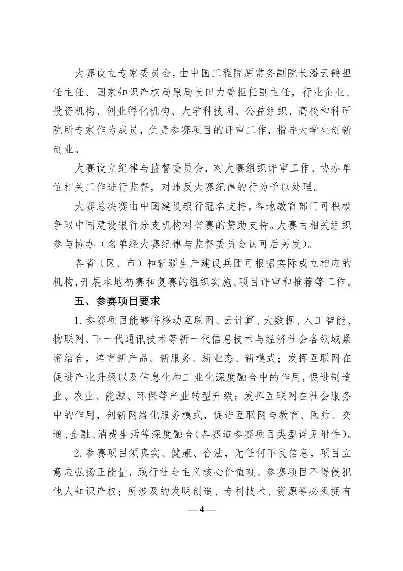 转发教育部关于举办第五届中国“互联网+”大学生创新创业大赛的通知