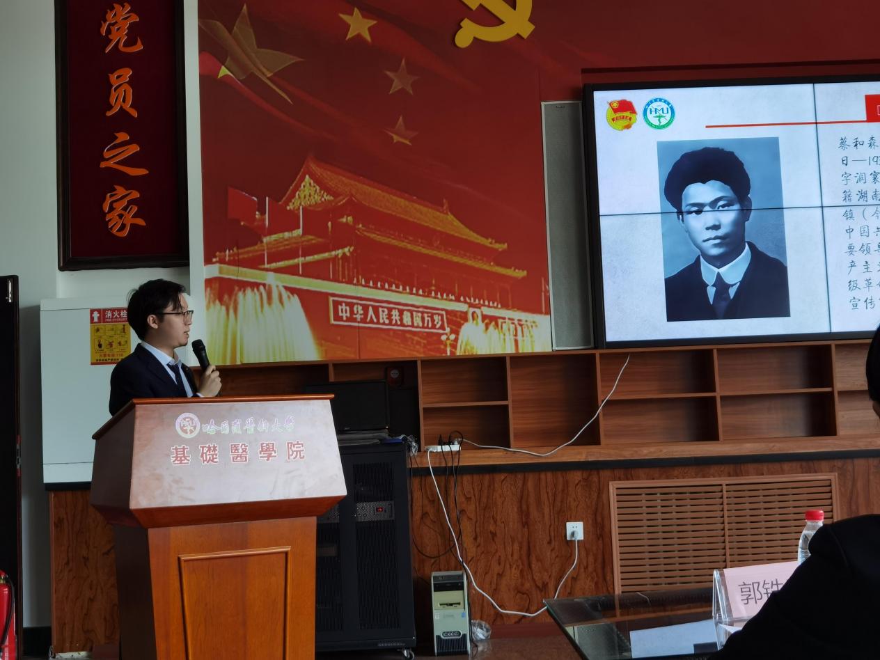 2021年6月25日上午,校团委与基础医学院团委联合开展的“学党史、强信念、跟党走”暨哈尔滨医科大学“四史”青年宣讲团第十场巡讲于基础医学院三楼会议厅召开。校团委书记王曦、基础医学院副院长朱骥伟、“四史”青年宣讲团指导教师姜欢、基础医学院团委书记郭铁云、以及多名教师代表、学生代表出席本次活动。