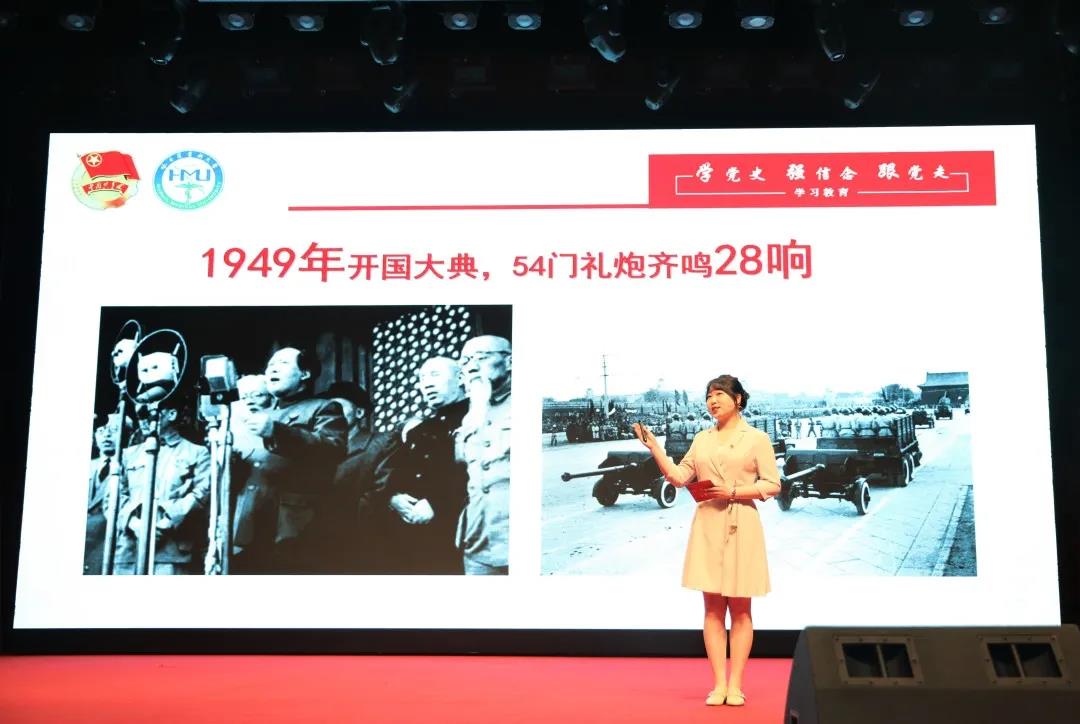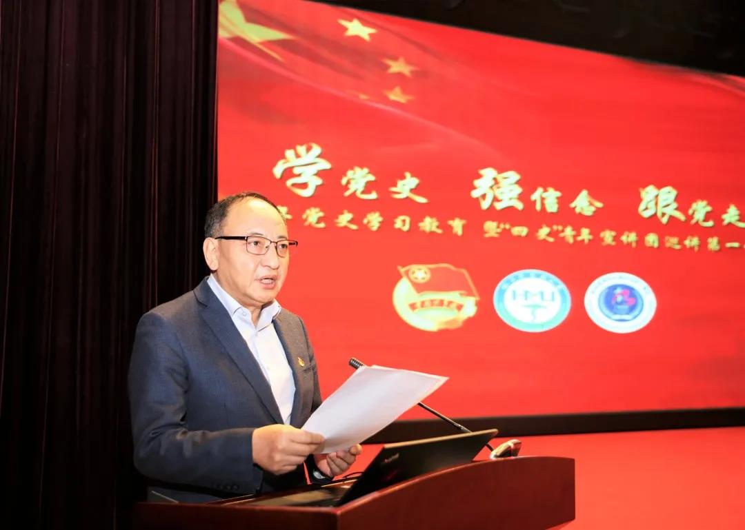 为庆祝中国共产党成立100周年,讴歌党的丰功伟绩,深情回顾党的奋斗历史,引导广大青年坚定不移听党话、跟党走,6月1日下午17:30,青年党史学习教育暨“四史”青年宣讲团巡讲第一场在哈医大一院学术报告厅召开。在建党百年之际,哈尔滨医科大学“四史”青年宣讲团成员走进哈医大一院进行党史学习教育宣讲,让广大青年师生从党史中汲取红色力量,补足精神之钙。