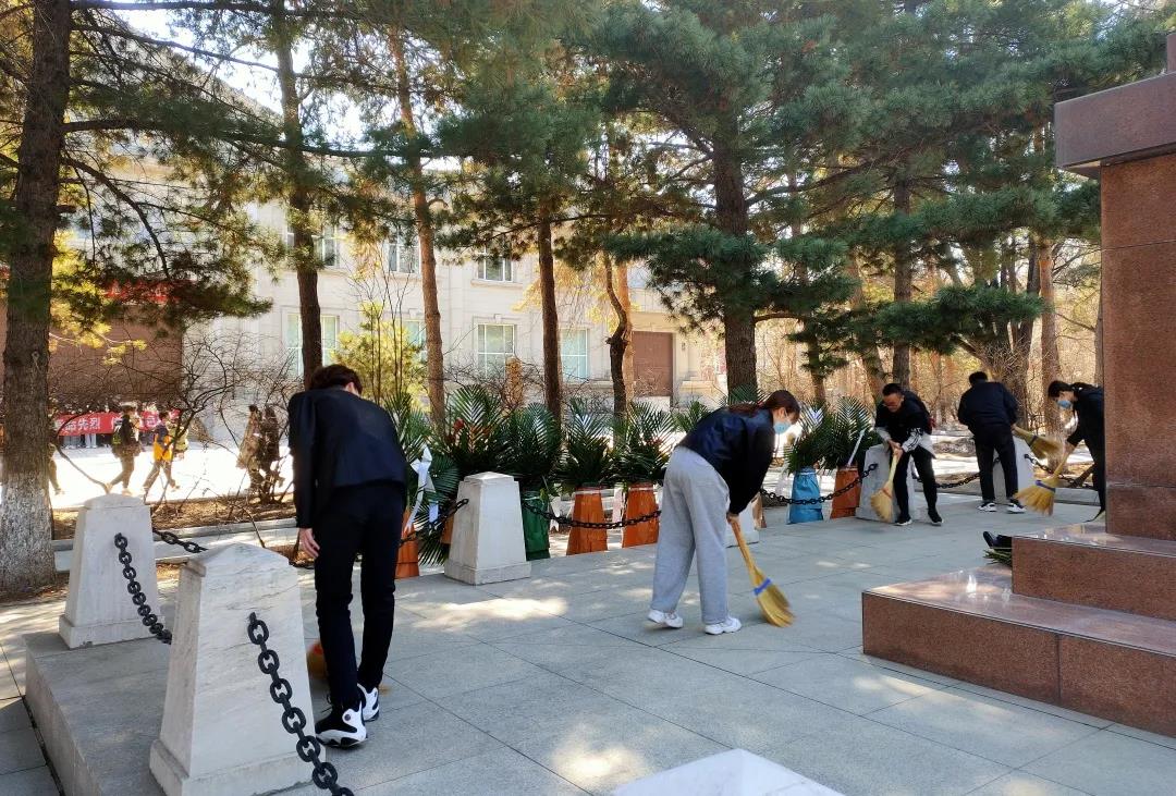 学生代表有秩序地用扫帚清扫烈士陵墓,并对周围的杂草进行清理。悼念英雄,铭记历史,药院学子将追随先辈的脚步,为祖国建设尽心竭力,奋勇向前。