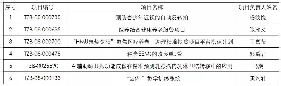 附:第十二届“挑战杯”中国大学生创业计划竞赛国赛哈尔滨医科大学入围名单