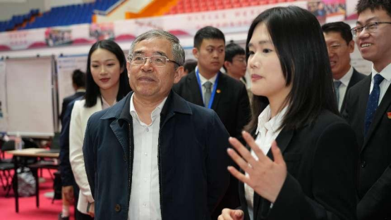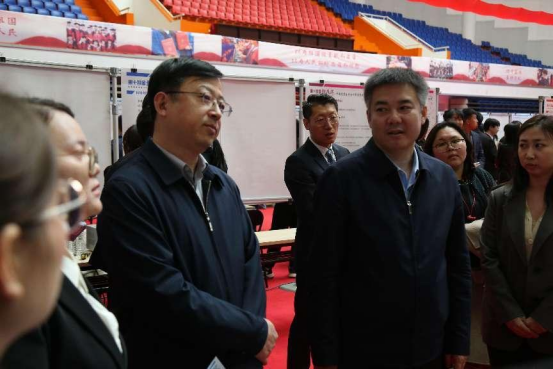 开幕式结束后,与会领导嘉宾走到作品展区,与同学们亲切交流,详细了解大家的研究过程和进展情况。