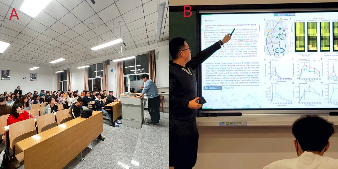 A:优秀学长分享科研学习经验;B:社团常规文献研读活动