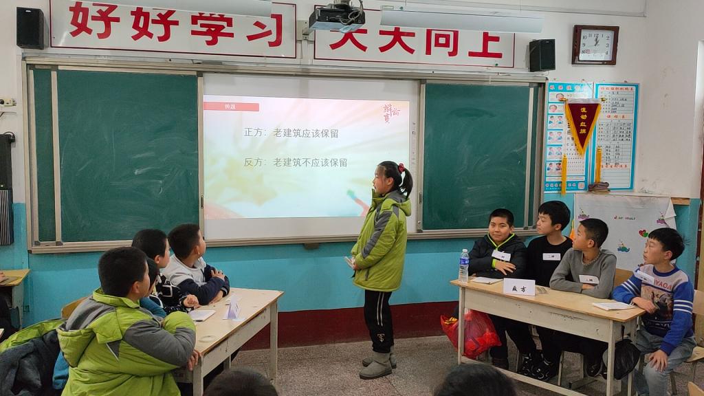 在这支教的一年,让我印象最深的是六年级的孩子们。他们精力旺盛,求知欲强,正是追求新鲜事物,探索世界的年纪。结合教材与实际情况,我决定在综合课上举办一场班级辩论赛。在课上我领着孩子们观摩了第一届大学生辩论赛,孩子们果然对辩论赛产生了极大的兴趣,都踊跃报名,这使我们原计划的一场辩论赛不得不分为两场,同行的志愿者关健也主动过来帮忙维持赛场秩序。这是孩子们人生中的第一场辩论,他们起初非常紧张,甚至连精心准备的材料都被手心的汗水打湿,但随着两队的互相交锋,他们渐渐游刃有余,纷纷脱稿各抒己见,整场比赛的气氛和谐而又纠结,谁也不让着谁,观众们也跃跃欲试,观众提问环节掀起了整场比赛的高潮,孩子们都认真听辩论赛,努力寻找突破口,互动性极强。这场辩论赛也许不是最精彩的,但一定是我最难忘的,虽然教室以外是寒冬,但现场春意融融,气氛热烈。我们仅仅给孩子们搭建了一个舞台,孩子们却带给了我百分百的惊喜。