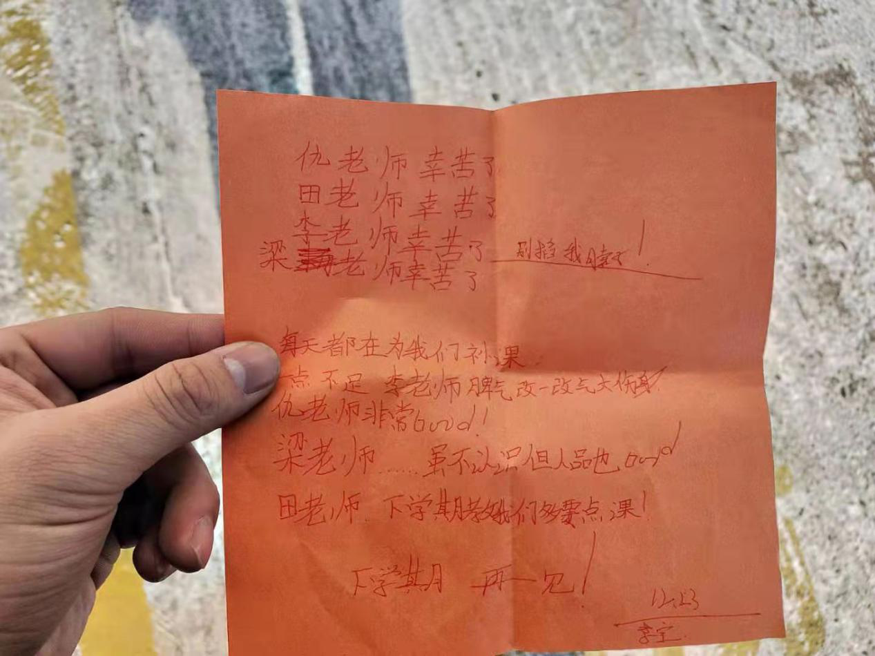 晚自习是一天当中我和孩子们相处最轻松的时候,那时我仿佛又回到了自己的学生时代。我的出现,让孩子们充满了好奇,不光出于对老师的敬畏,更是出于对外面世界的向往。在和孩子们熟悉后,我告诉他们我的家在哪,以及我的经历,孩子们听得都很认真。结束后,五年级的单文海兴奋地跑过来,仰着头递给我和另一位带教老师两枚泡泡糖,这让我非常激动,说明我已经走进了他们的内心。我的学生来自四面八方,成绩也参差不齐。和李宝同样来自北红村的六年级学生任庆坤一直处于神游的状态,做作业进度很慢,本上只有扭七歪八的几个字。我跟他交流一次后发现他思维其实很敏捷,数学题很快就能给出解题思路,但遇到下一题总是有思路却不爱动笔。后来经了解,原来是因为他认识的汉字太少,会解题但不会读题。于是我找来语文老师给他拿了一本二年级教材,给他分配了每周的识字任务。坚持了一段时间,效果不是很明显,同样的字总是背了忘忘了背,完全达不到预期的效果。后来我又开始让他写日记,不会的用拼音标注,写完之后让他通读自己的日记,并且每次教他四五个常用字。诚然学完忘忘了再学仍是常态,但在高频的练习下,他掌握了许多常用字,很有收获。而要说我学生里最让我烦恼的是一个四年级的小男孩,他的作业总是以应付的方式草草完成,晚自习又是各种小动作,屡禁不止,让我十分头痛。突然在两周后的一个晚上,他和另外一个同学悄悄地走到我跟前说:“小仇老师,我们班主任老师留作业了,可以教我们吗...”。他们班主任老师留的作业是一篇作文“推荐一个好地方”,可是作文书上的范文和现实环境差距太大,实在无法借鉴。我意识到这对于我来说,正好是个激起他们学习欲望的绝好的机会。我一步一步引导他们,从主体选取、创作角度、文章结构、描述方式等方面,一步步地往下写。第二天午休时,这个小男孩激动的告诉我,他的作文受到了老师的表扬。这次他一改往常面对学习消极贪玩的状态,仿佛就像一轮初升的小太阳,尝到了认真写作文的甜头。我也意识到老师的一句鼓励可以对学生产生巨大的影响。孩子成长路上是需要肯定的,就像一朵鲜花的成长,需要阳光、需要施肥、需要浇水,而不是置之不理任其干枯。世界上没有两片相同的树叶,也没有两个相同的人,每个孩子都有自己的特色,因材施教才能取得最大的收获。
