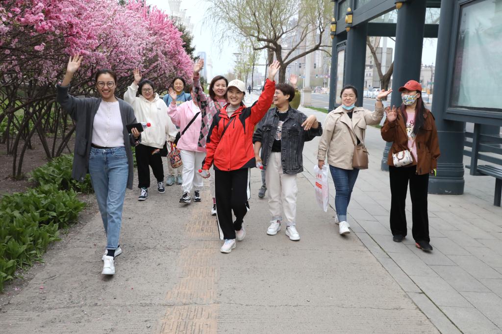 春风习习、桃红盛-=开的音乐长廊上, 职工从群力外滩音乐公园到阳明滩大桥往返徒步7公里。一路上,大家欢声笑语,亲切交谈,团结融洽的氛围与沿途优美风景相互印染。以徒步的形式传播健康文化,感悟行走的力量,在徒步中体会运动的快乐,享受运动的激情,领悟大自然的魅力,锻炼强壮的体魄,凝聚强大的精神力量。党委宣传部的工作人员用镜头记录下了大家的精彩瞬间。