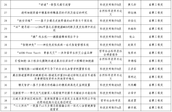 “挑战杯”黑龙江省大学生课外学术科技作品竞赛哈尔滨医科大学获奖作品名单