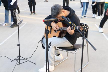 篮球场上,FD-crew街舞协会舞步激扬,和着动感的节拍,带动着场上所有人挥舞手臂,摇晃出《ping pong》的节奏。