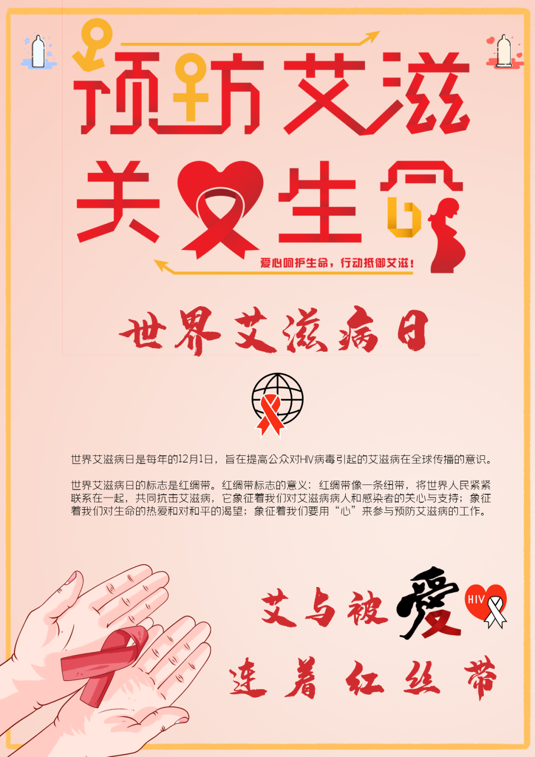 在这“千树万树梨花开”之际,无数人享受着美好的冬日,幸福的时光,但谁又知道有那么一群人从始至终都在承受着病痛的折磨。“在地球上,每天约有1600名15-24岁的青年感染艾滋病病毒;至2017年,全世界有390万15-24岁青年感染艾滋病病毒;平均每10分钟都有1名青年死于与艾滋病相关的疾病……”这是一组真实的数据,而这组数据也正提醒着人们:艾滋病并不遥远。在今年的世界艾滋病日,为了让大家更好地了解艾滋病,更好地预防艾滋病,我校青协举办了艺术作品征集活动,有无数优秀作品涌现,现在,让我们来一起欣赏这7份图片类作品吧!