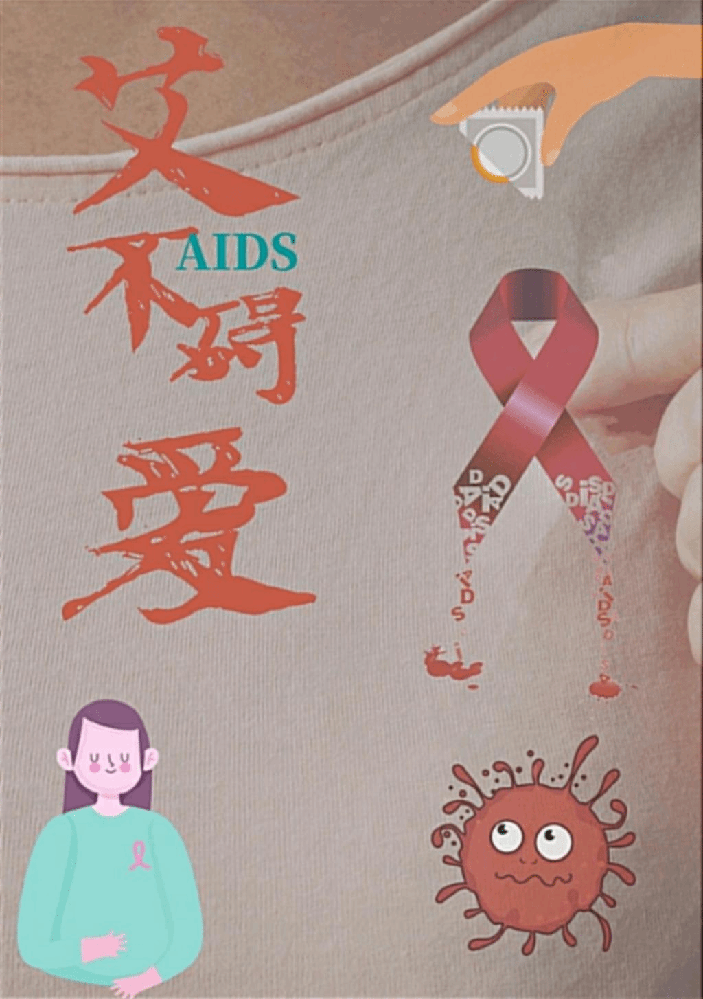 牛佳晨同学将其作品命名为《预防艾滋 关爱生命》,他的作品将世界艾滋病日、男女符号、红丝带、红心、怀孕母亲等元素融合,表现了对艾滋病人的关怀与一视同仁,运用多方面多层次的主题元素设计,使得海报更充满人文关怀,并用红色为主题颜色,使海报更加引人注目,也从侧面表现出了对艾滋病的社会关注度日益增长。