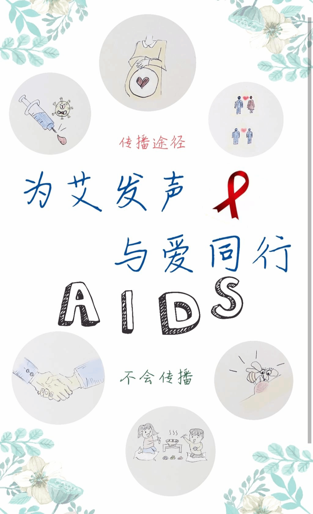 何雨欣同学通过海报的形式科普艾滋病的三种传播方式,日常的握手、亲吻并不会传播艾滋病,呼吁大家不要歧视艾滋病人,也告诫大家要保护自己。