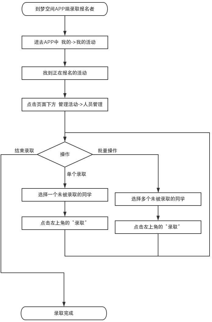 流程图 6:到梦空间APP 端录取报名者流程图