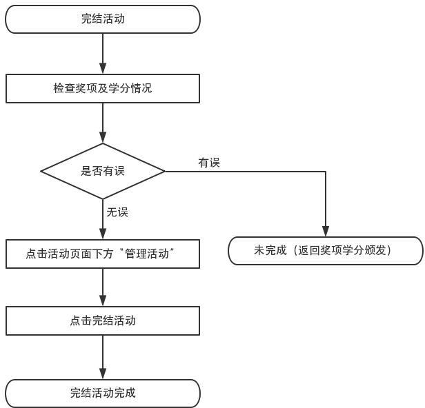 第十九条 完结活动。颁发奖项及发放学分均完成后,活动负责人应及时在到梦空间APP上点击 ”管理活动 ”→“完结活动”,生成相关人员的活动记录。记录一旦生成,活动将被冻结,无法继续进行颁奖和学分操作。