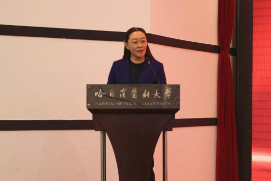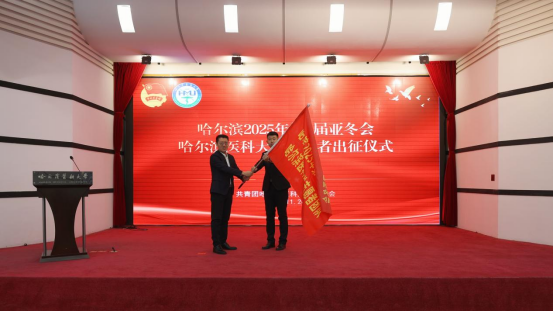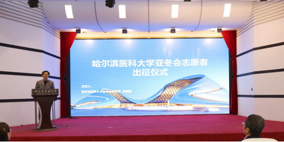 11月26日下午,哈尔滨2025年第九届亚冬会哈尔滨医科大学志愿者出征仪式在主楼演讲厅举行。学校党委副书记东梅出席仪式并讲话。校团委副书记马文超主持会议。