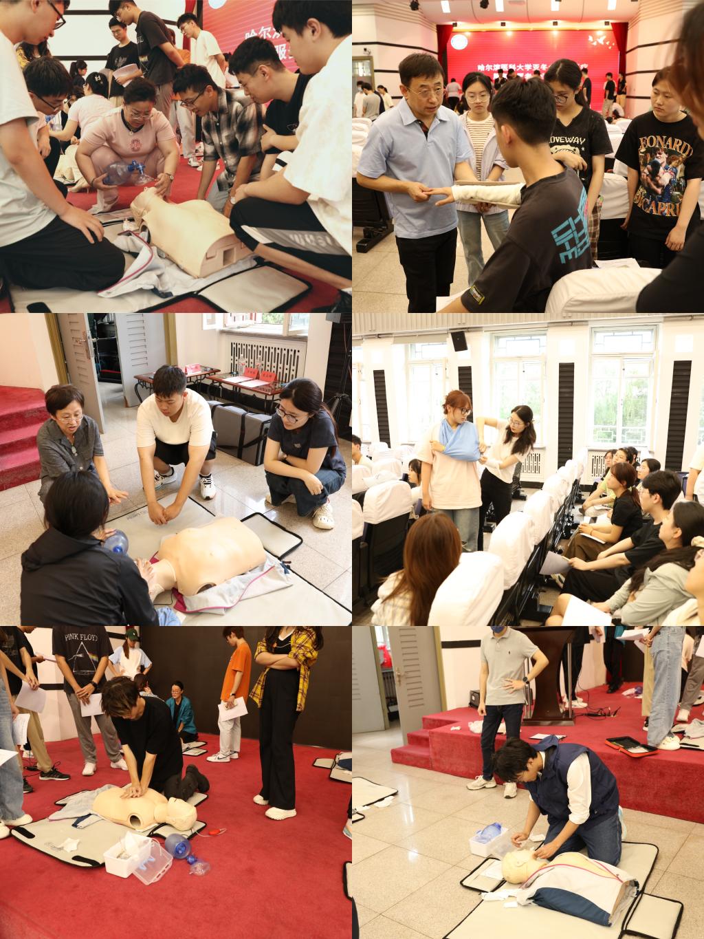 附属一院医务科主任李峒作,感染监控科主任任慧,急诊内科主任朱立群,急诊外科副主任周世峰,副主任护师、护士长孙丹作为培训老师为亚冬会赛事医疗服务志愿者授课。此次培训为期两天,分为理论授课、实操演练、随堂考核等部分,我校全体亚冬会志愿者带队教师以及医疗保障组志愿者到场参会。