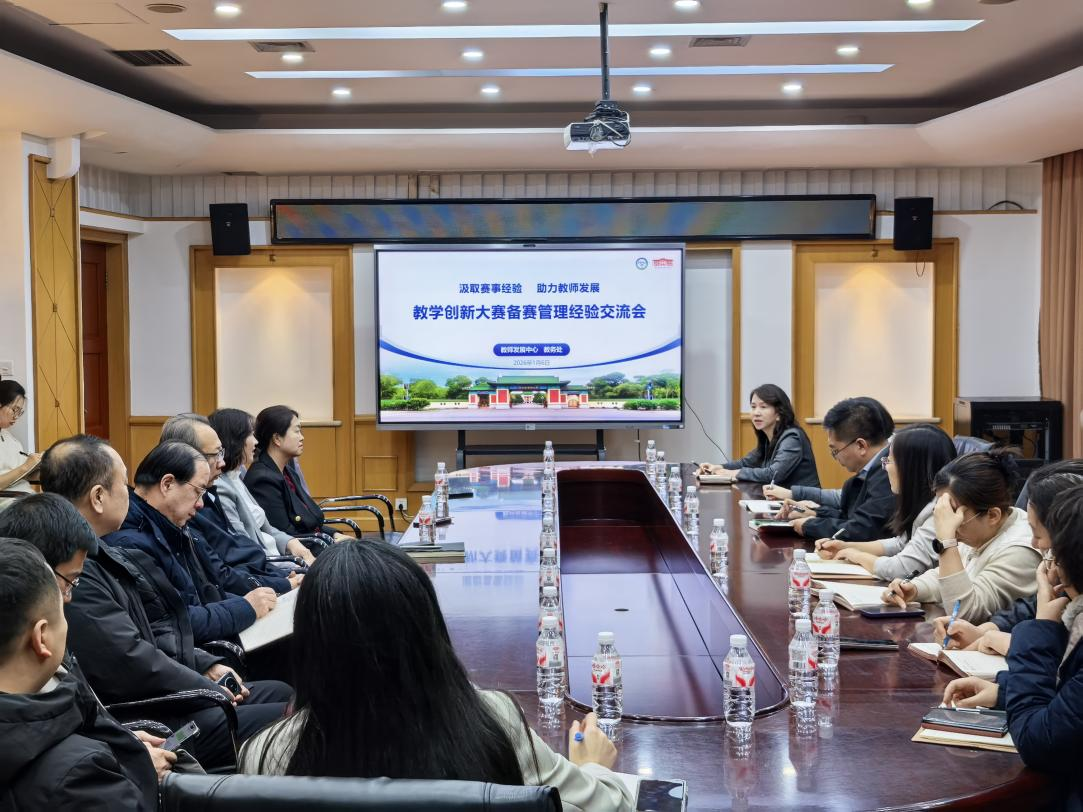 1月6日,学校教师发展中心联合教务处举办“汲取赛事经验 助力教师发展——教学创新大赛备赛管理经验交流会”。教师发展中心主任吴玉华主持会议。