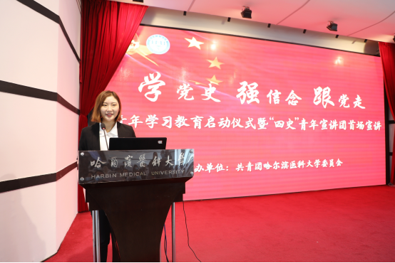 4月24日上午,共青团哈尔滨医科大学委员会“学党史 强信念 跟党走”青年党史学习教育启动仪式暨“四史”青年宣讲团首场宣讲在哈尔滨医科大学成功举办。哈尔滨医科大学党委副书记袁重胜、副校长许超千、研究生院常务副院长金焰、各学院共青团工作主管领导出席活动,3000余名团干部和青年学生线上线下共同观看了宣讲。