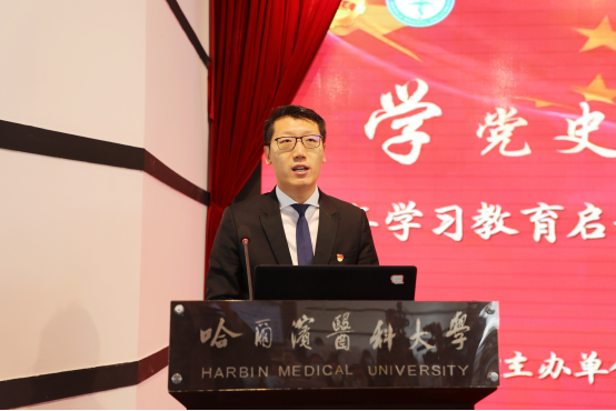 学校团委书记王曦宣读了《共青团哈尔滨医科大学委员会关于在全团开展党史学习教育的实施方案》,面向全体共青团员部署学习内容,多彩课堂学党史、青年团员知党史、志愿宣讲传党史、学习党史融四史等系列活动将贯穿全年,并对各级团组织、团干部提出压紧压实责任、把握正确导向、注重统筹推进、加强宣传报道、加强督促指导五点要求。