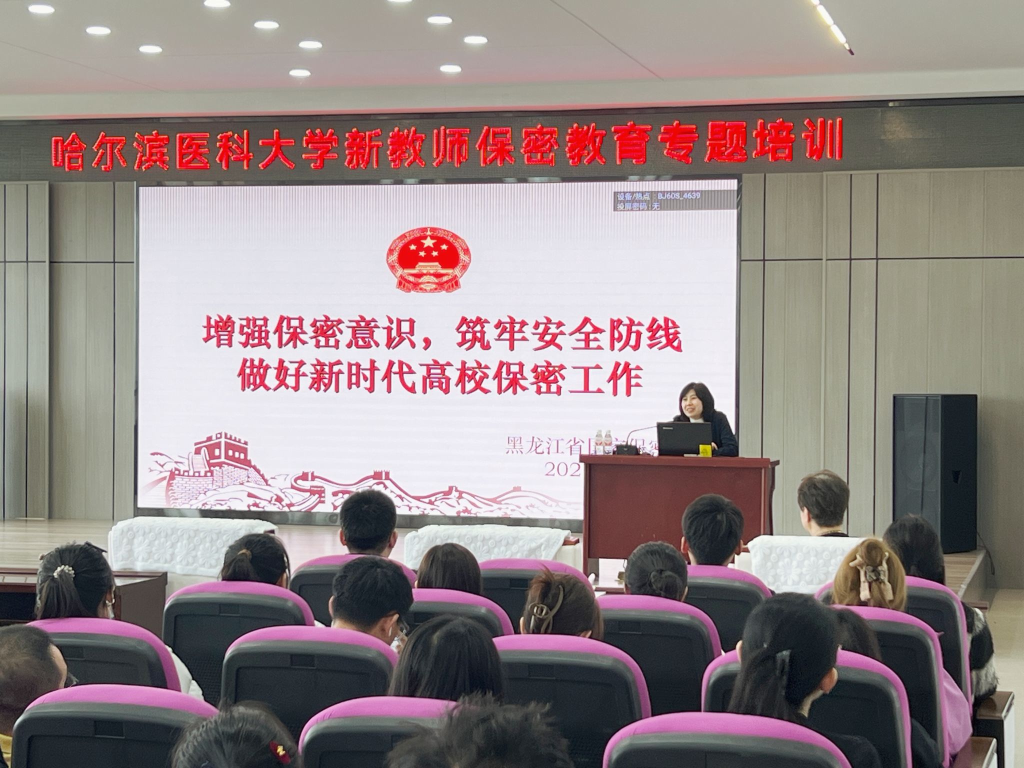 为深入贯彻总体国家安全观,进一步提升新入职教师的保密意识和履职能力,4月10日,哈尔滨医科大学举办新教师保密教育专题培训。本次培训特邀黑龙江省国家保密局宣传法规处副处长王倩担任主讲人,围绕“增强保密意识,筑牢安全防线”主题,系统讲解保密工作基本知识与实践要求,为全体新教师上好职业生涯“保密第一课”。